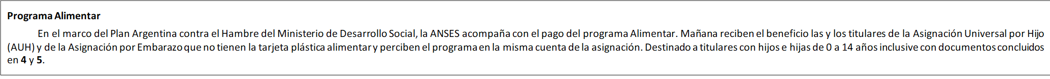 En el marco del Programa Alimentario PAMI, la ANSES abona mañan el pago extraordinario equivalente al monto del bolsón de alimentos para jubilados, jubiladas, pensionados y pensionadas con documentos finalizados en 8 y 9 cuyos haberes superen los 23.120 pesos. Para más información se puede ingresar a www.pami.org.ar/programa-alimentario.