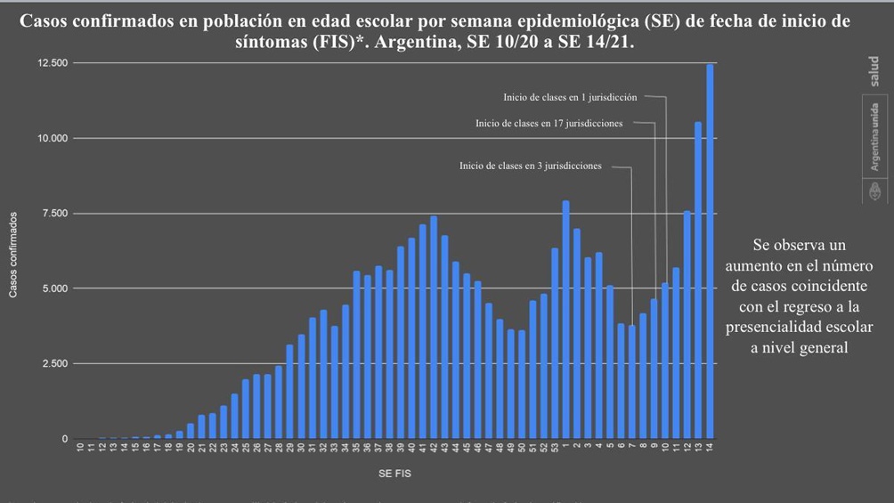 Sobre ese punto, además, señaló que desde el comienzo de la educación presencial, en marzo pasado, fue «exponencial» el crecimiento de contagios en las personas entre 9 y 18 años en la Ciudad.