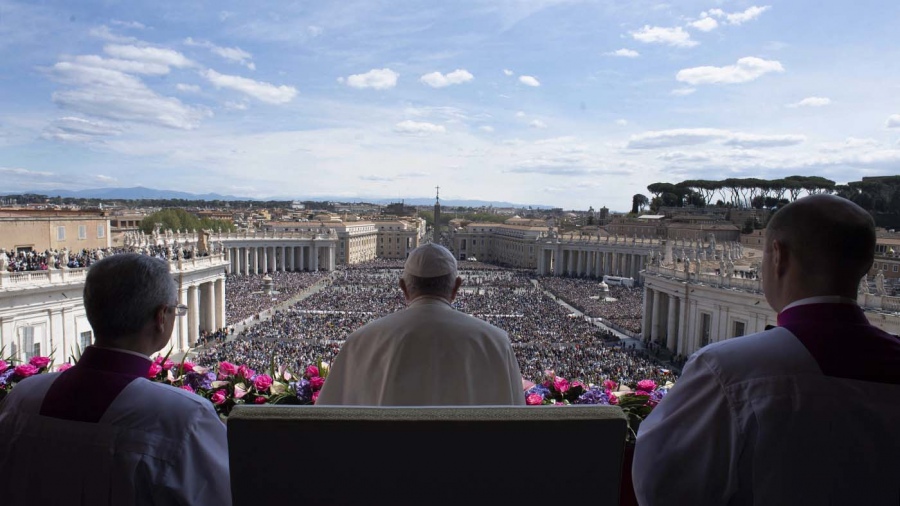 Francisco, que dio su bendición tras haber celebrado la Misa de Resurrección en la Basílica de San Pedro, reclamó además «que los responsables de las naciones escuchen el grito de paz de la gente, que escuchen esa inquietante pregunta que se hicieron los científicos hace casi sesenta años: ¿Vamos a poner fin a la raza humana; o deberá renunciar la humanidad a la guerra?«, incluida en un documento escrito por Albert Einstein y Bertrand Russell en 1955.