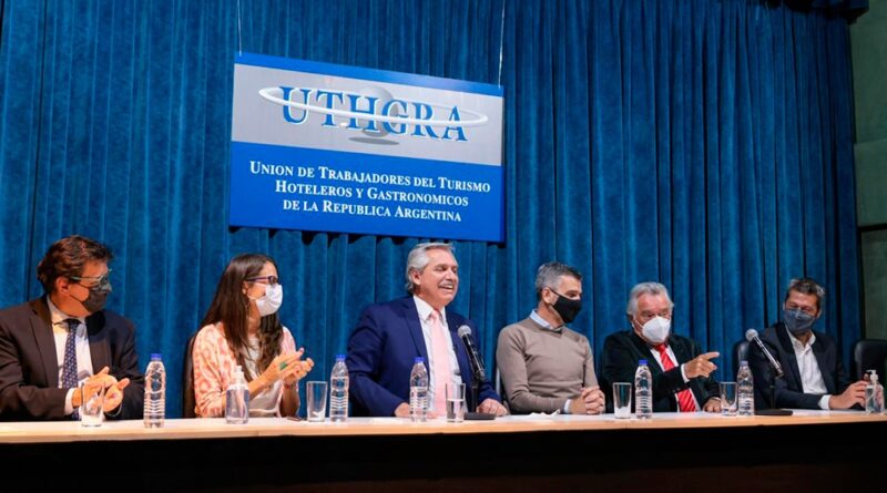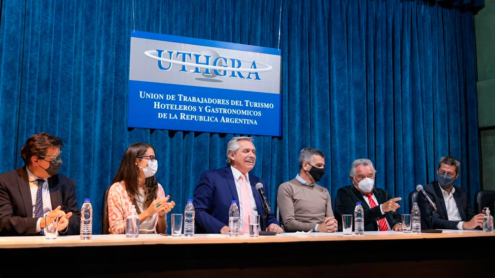 El presidente Alberto Fernández sostuvo este jueves que «lograr que los que tienen un plan tengan un empleo» es «formalizar a la Argentina», al encabezar en la sede de la Unión de Trabajadores del Turismo, Hoteleros y Gastronómicos de la República Argentina (Uthgra) la firma de un convenio con representantes de cámaras empresarias y de sindicatos del sector para la compatibilización de programas sociales con empleo genuino.