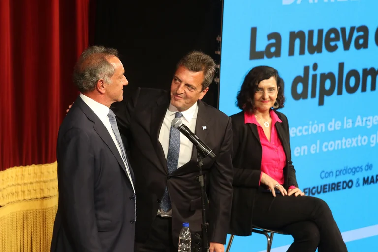 El embajador en Brasil, Daniel Scioli, presentó su nuevo libro “La nueva era de la diplomacia”, en el teatro Avenida. Lo hizo junto al ministro de Economía y candidato a presidente de Unión por la Patria (UP), Sergio Massa. Protagonistas de una relación política sinuosa, ambos destacaron la labor del otro en este tiempo de campaña electoral y puesta en valor de la gestión oficialista.
