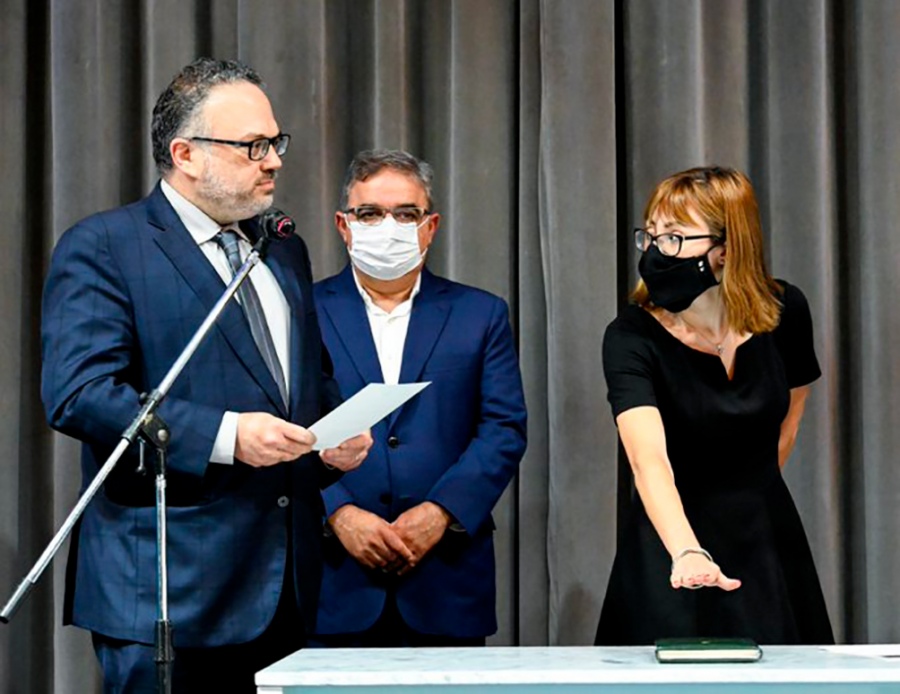 Participaron del acto de asunción el titular de la Unidad del Gabinete de Asesores, Alejandro Sehtman; el secretario de Industria, Economía del Conocimiento y Gestión Comercial Externa, Ariel Schale; de Gestión Administrativa, María Claudia Daverio; la coordinadora del Gabinete de Género, Paula Basaldúa y el gobernador de la provincia de Catamarca, Raúl Jalil.