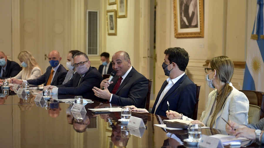 El jefe de Gabinete de Ministros, Juan Manzur, se reunió con autoridades y representantes diplomáticos de naciones que conforman la Unión Europea (UE), a quienes les expresó que el gobierno argentino tiene «la voluntad y la decisión política de avanzar hacia un acuerdo de entendimiento con el Fondo Monetario Internacional (FMI)», pero sin que esa negociación impida el crecimiento económico del país.