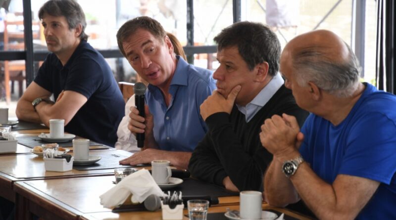Santilli compartió un desayuno en Tigre con dos de los integrantes de su lista, Facundo Manes y Graciela Ocaña; los jefes de campaña, Néstor Grindetti y Manuel Terradez; y el candidato local de Cambiemos, Segundo Cernadas. Foto Daniel Davobe.